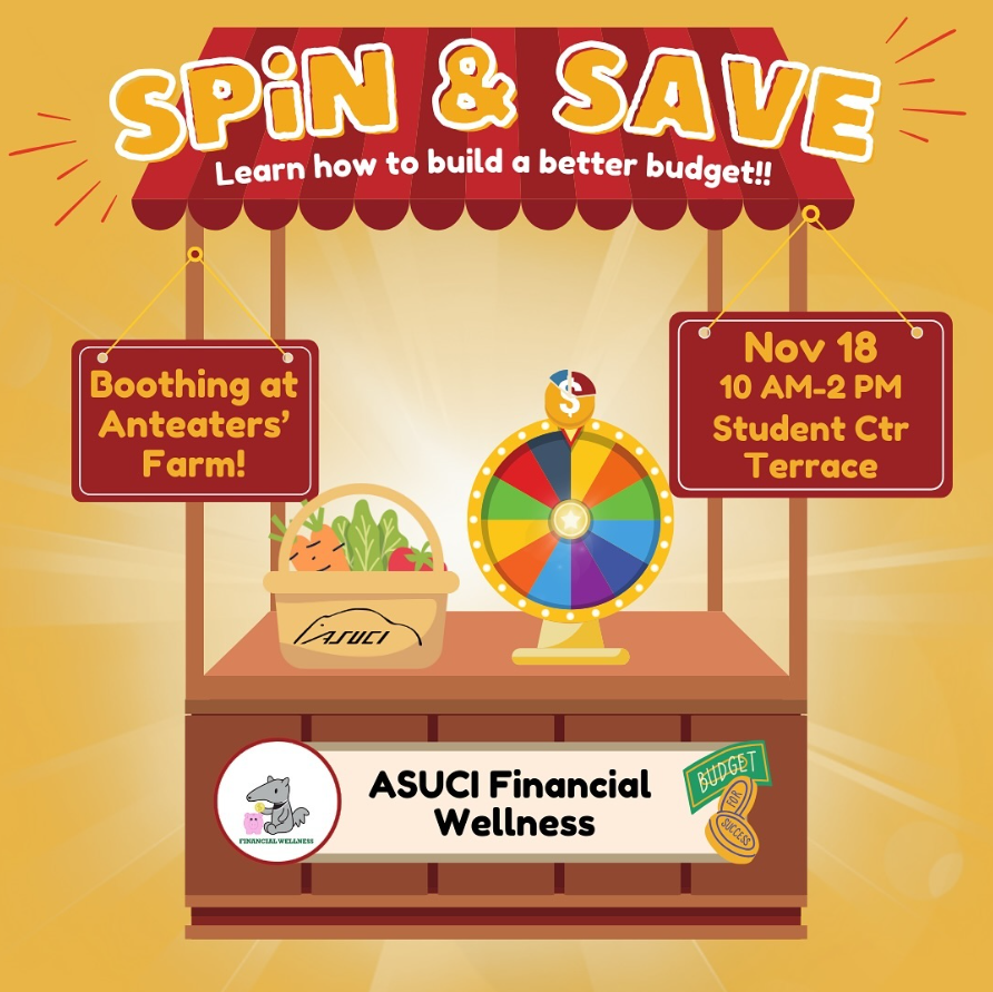 Join the Financial Wellness Commission at Anteaters’ Farm on November 18th for a chance to test your budgeting knowledge around food security and pick up practical tips to boost your financial wellness! 💸