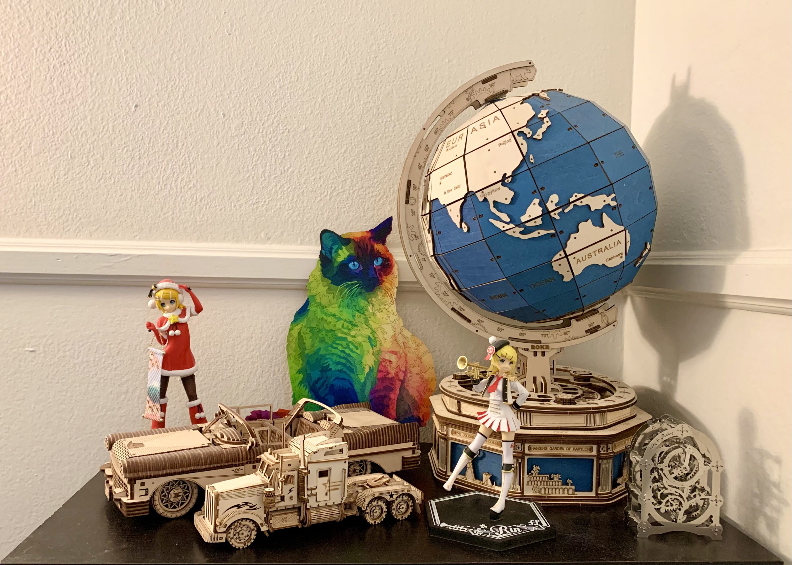 These were all the jigsaw and models (not include the anime figures) I assembled in the academic year 2019-2020. 2019 was the year I started studying at UCI. Being stuck at home during quarantine after a quarter, I started doing model assembly as a way to relax and practice mindfulness. I had three house movings within a year, but I always spared a small suitcase for my special collection. Now they locate right next to my study desk. My friend gave me a model as a gift this year, and my collection is looking forward to its little expansion. :D